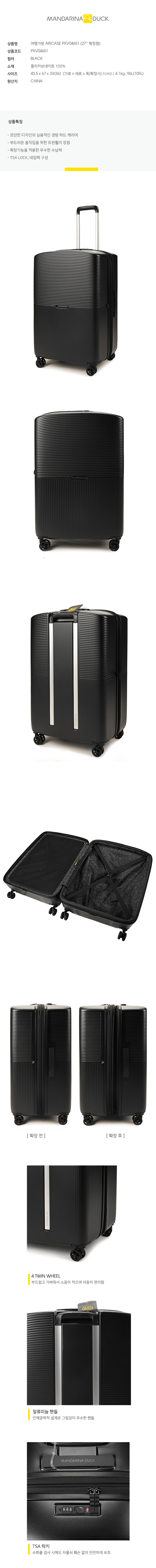 | 크기 | 43x 69 x 31(34) (가로 x 세로 x 폭(확장시) /cm) / 3.48kg, 76L |