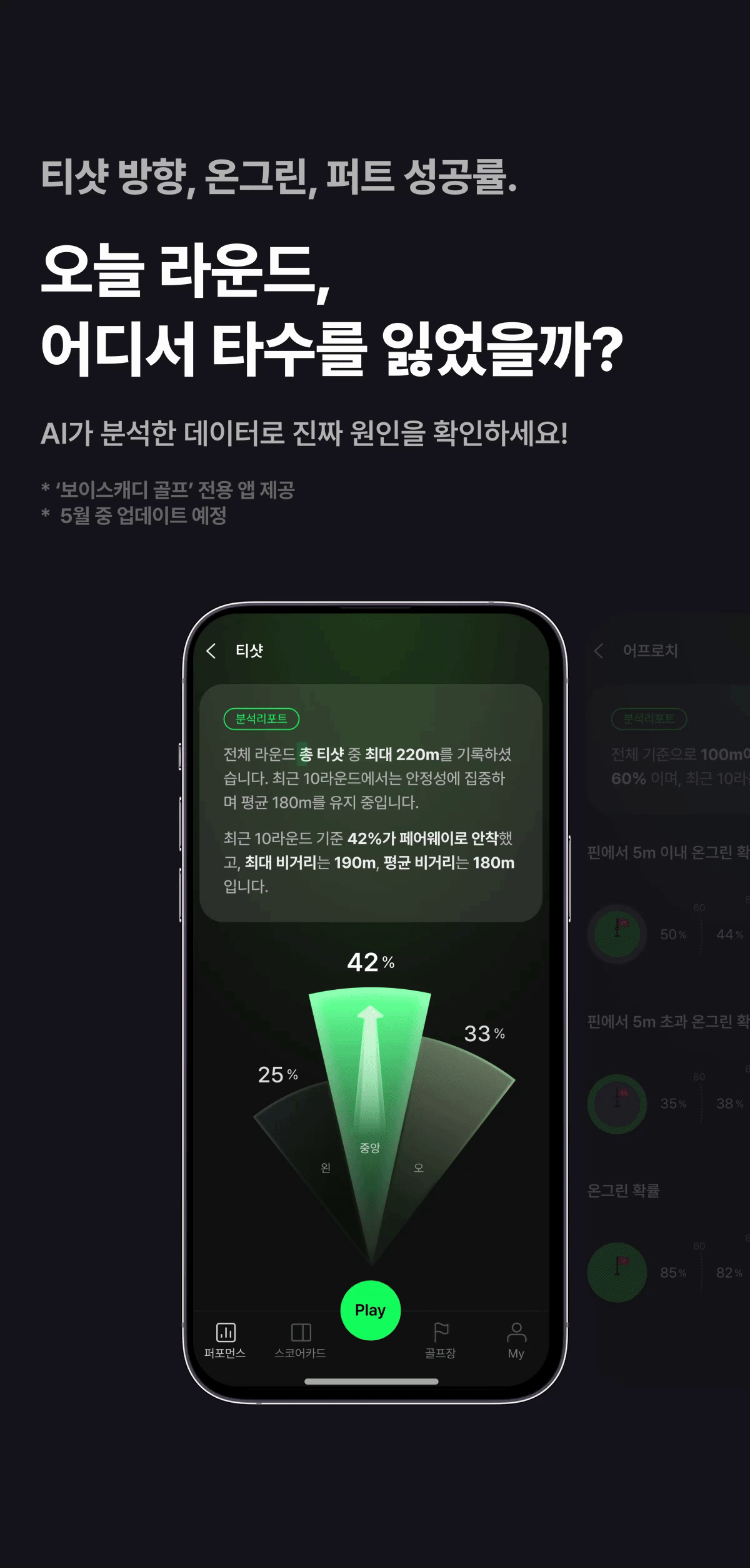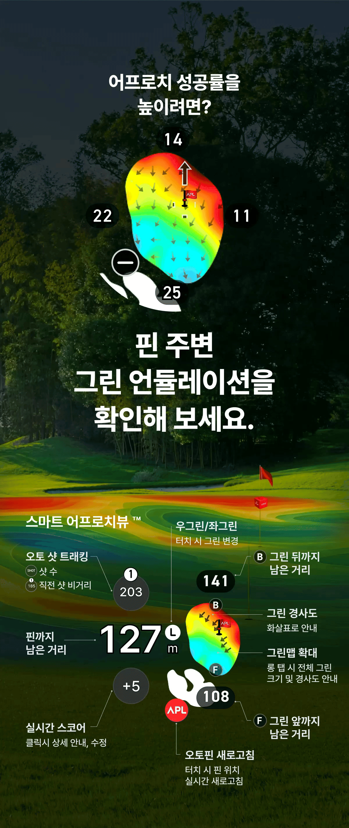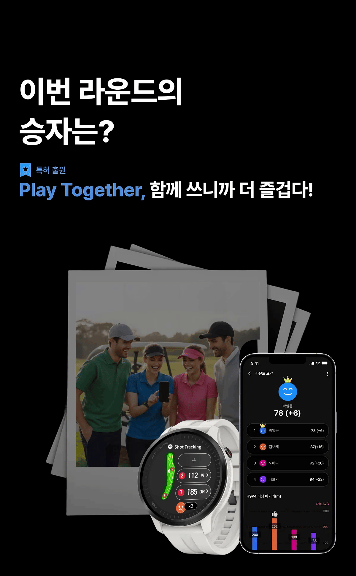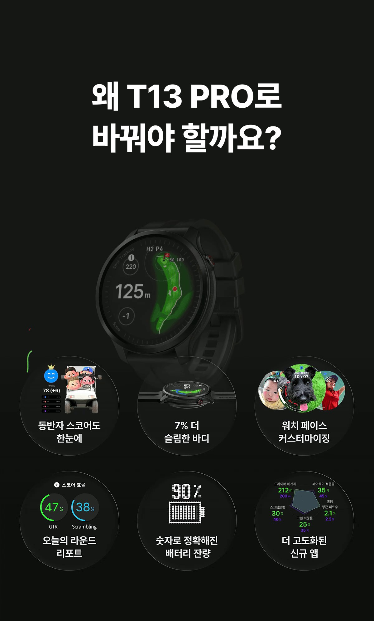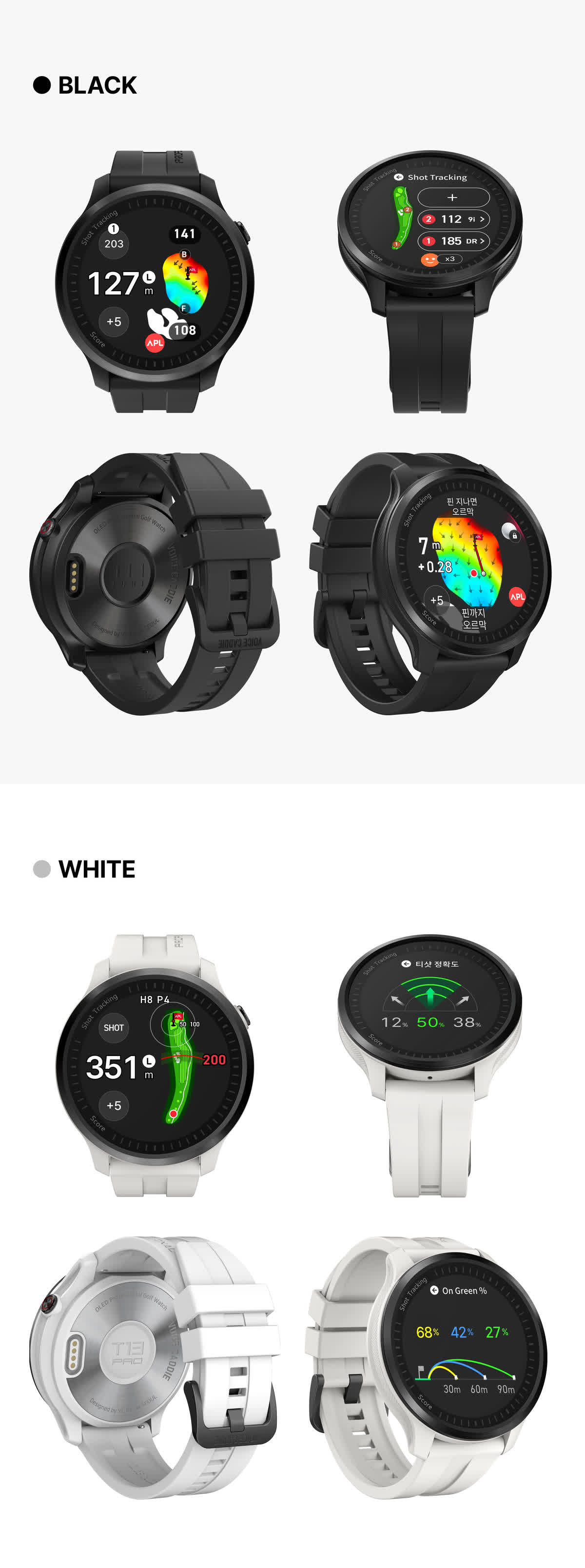 | 주요 사양 | * 라운드 요약 고도화 * 플레이 투게더 * 퀵 GPS+ * 듀얼 포인팅( IP, 그린중앙) * 스마트 어프로치뷰, 코스뷰, 퍼트뷰 * APL_실시간핀위치 서비스 (국내한정) * Super OLED 디스플레이 * 슬로프 가이드 * 클럽 추천 * 롱퍼트 가이드 * 홀 프리뷰 |