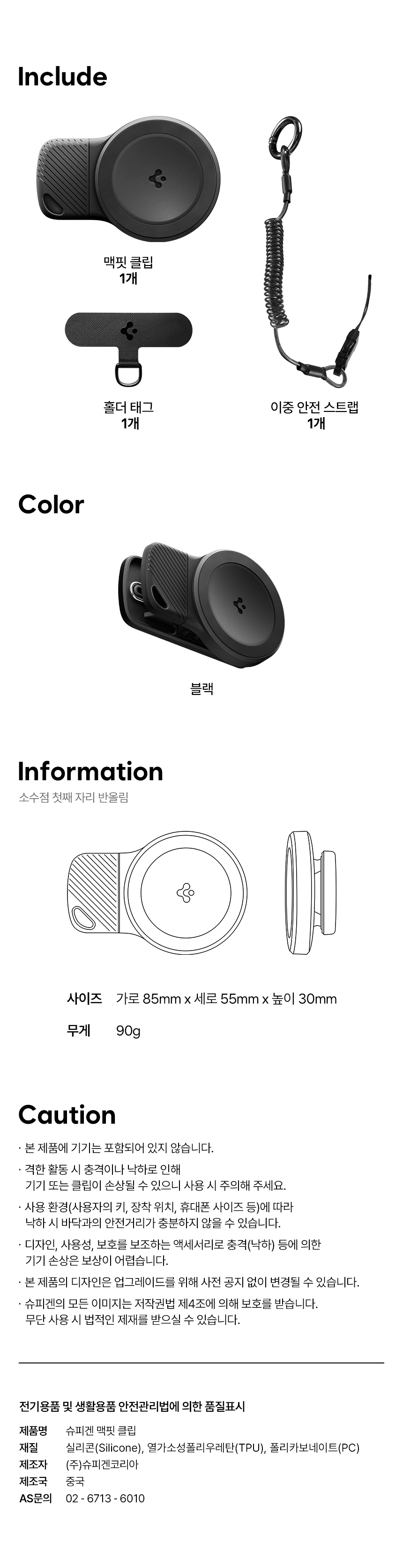 | 제조자, 수입자 | ㈜슈피겐코리아/㈜슈피겐코리아 |