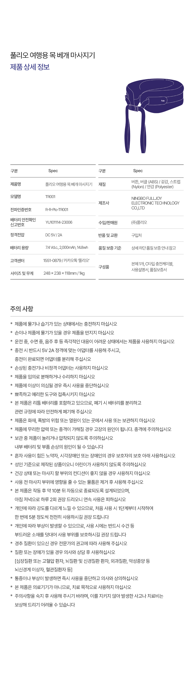| 품명 및 모델명 | 풀리오 여행용 목베개 마사지기 |
